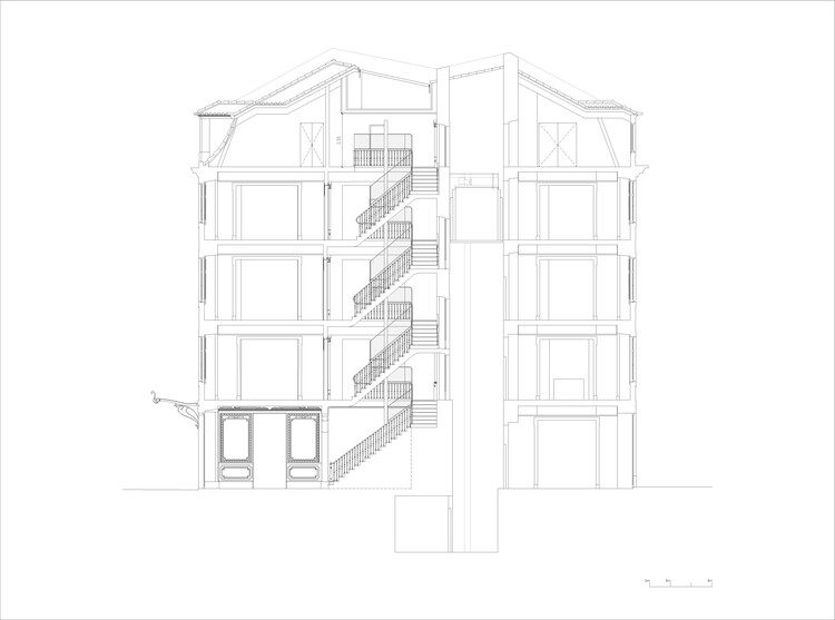 The internal organization emphasizes spatial continuity and connection with the city. The ground floor functions as an extension of the urban environment, strengthening the relationship between architecture and daily life.