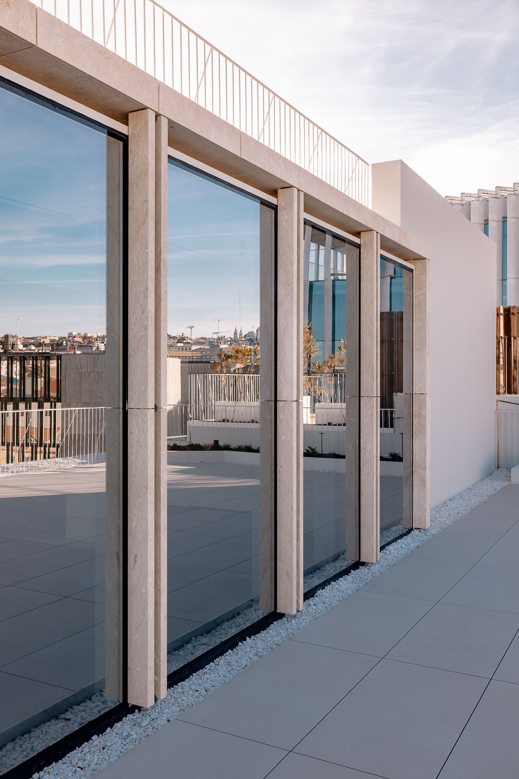 O 7º Piso é composto por um corredor que dá acesso a um fantástico rooftop com vista sobre os bairros históricos do Chiado e do Bairro Alto a norte e o rio Tejo a sul.